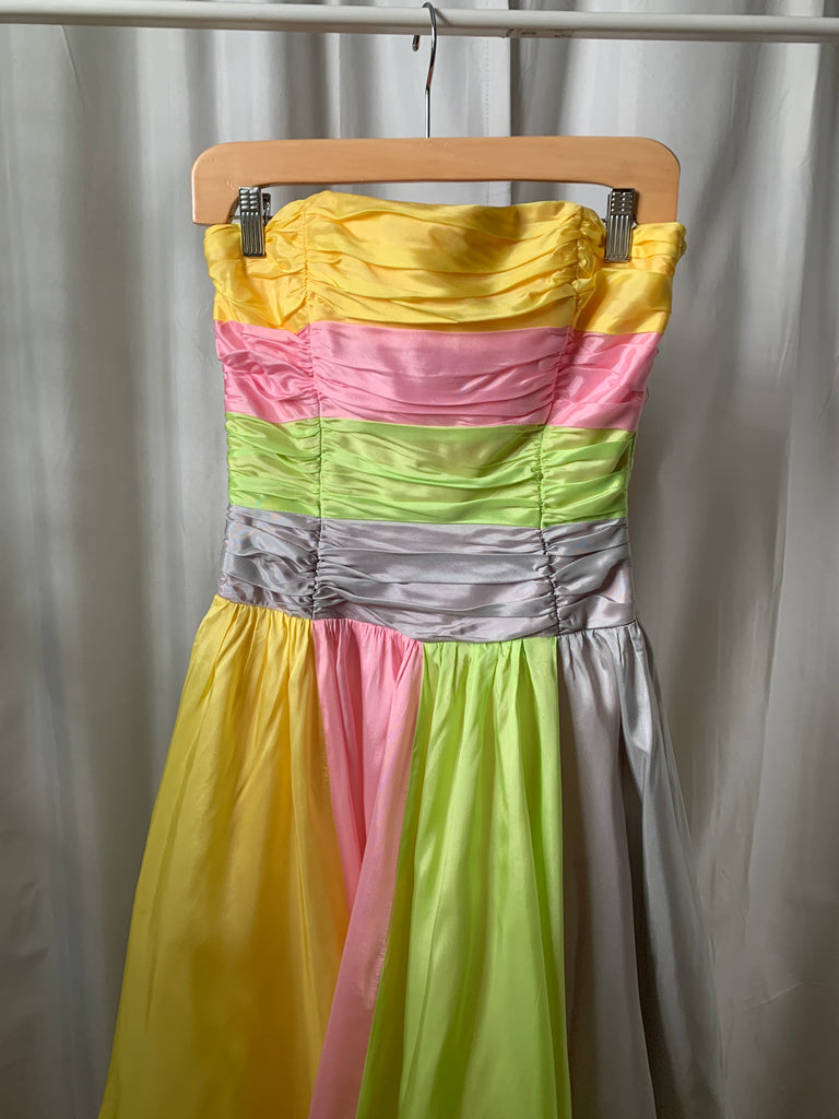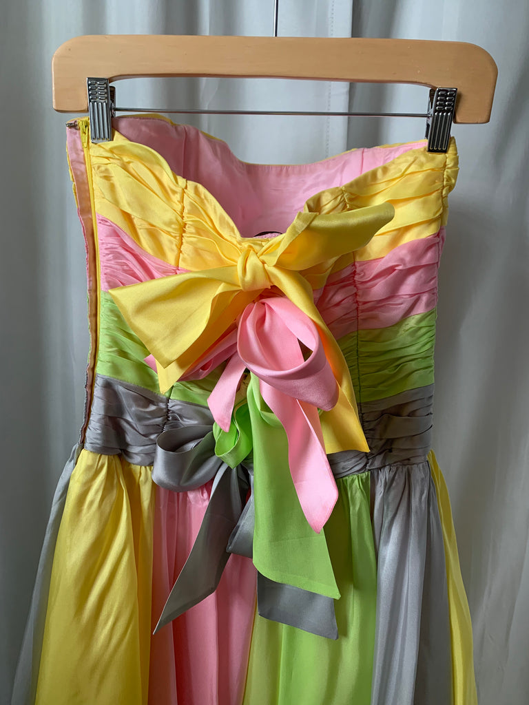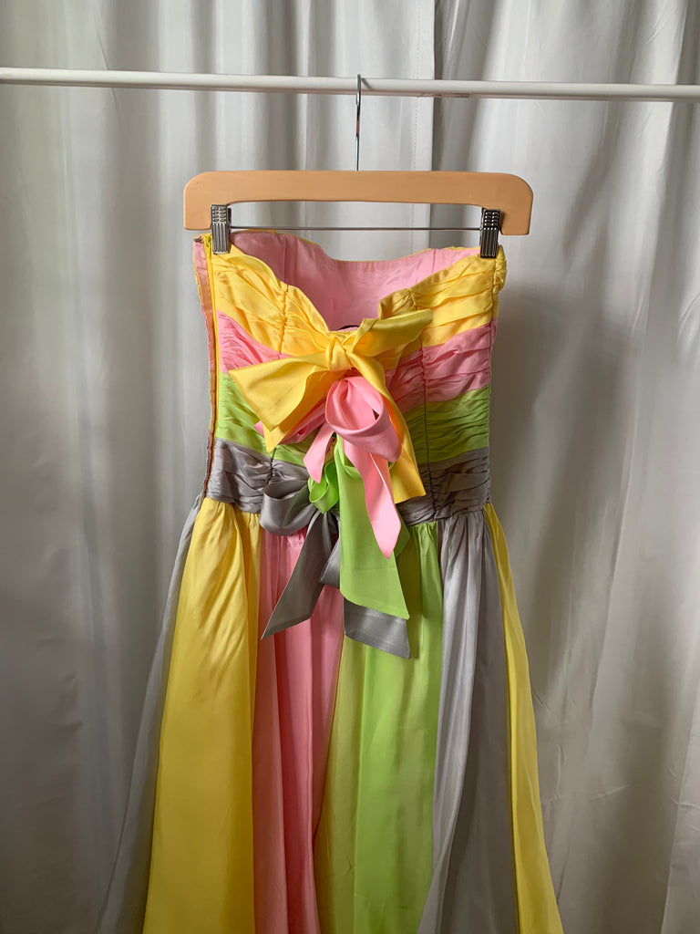 A true dream! The layers of colored taffeta and the bow details in the back are truly iconic.